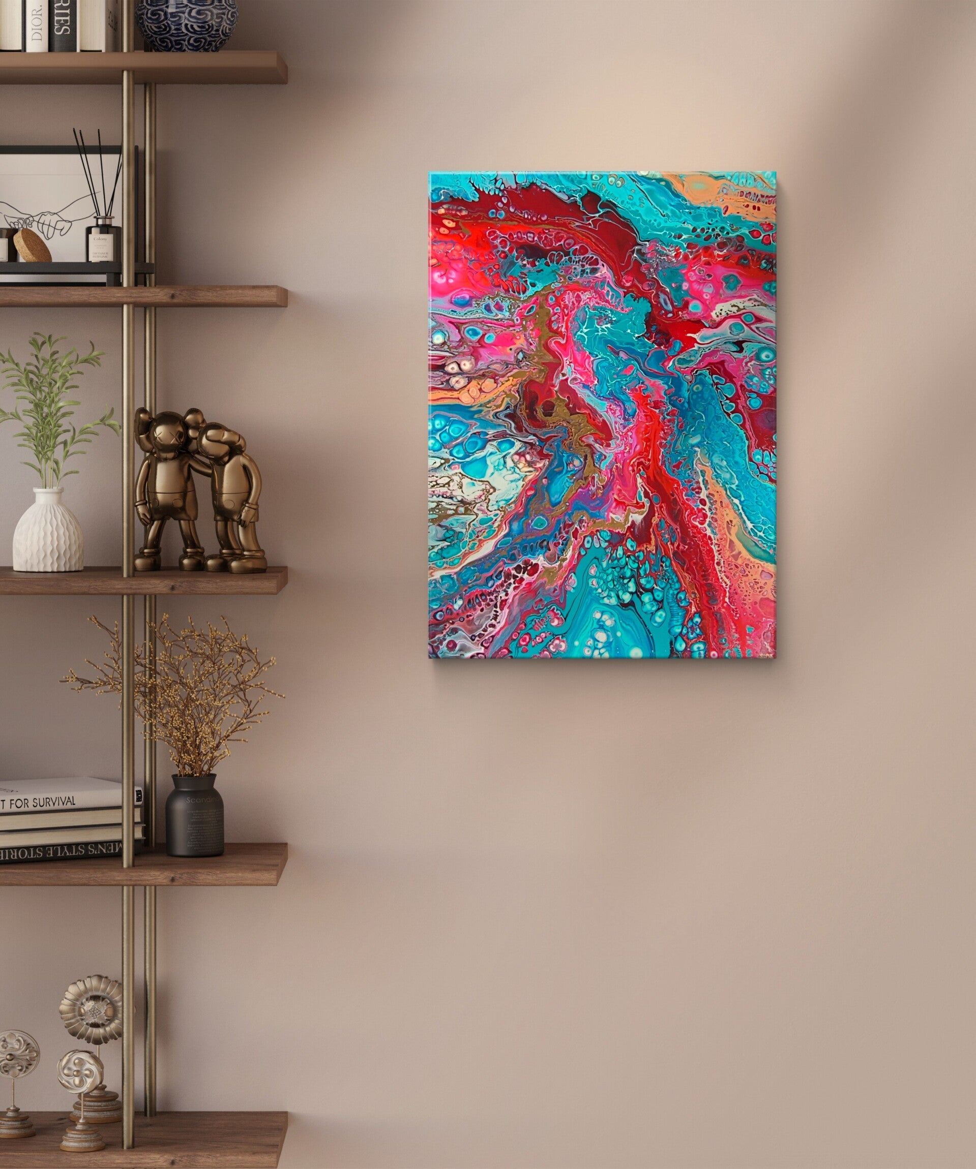 Dit canvasdoek van 50 bij 70 cm doet uw woonkamer opfleuren. Geïnspireerd door mijn toekomstige neefjes/nichtjes. Naast de vrolijkheid die die schilderije uitstraalt, staat het goud symbool voor de ''goude'' momenten in het leven.